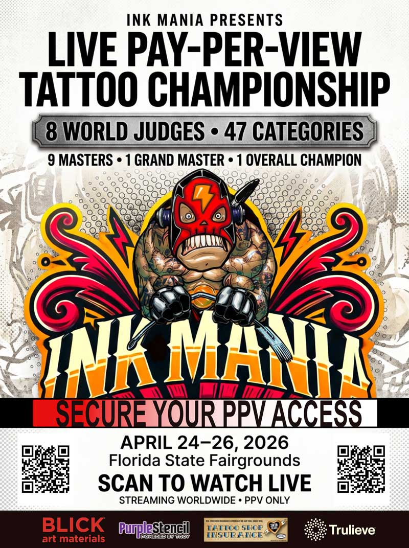 April 24th – 26th 2026 Day(s) : Hour(s) : Minute(s) : Second(s) Located at the 🎆Florida State Fairgrounds🎆 👑 Royal Sponsors 👑 Ink Mania Fest Brochure Click or scan to download the Ink Mania Fest 2026 digital brochure. Includes, layout map, scheduling and more!